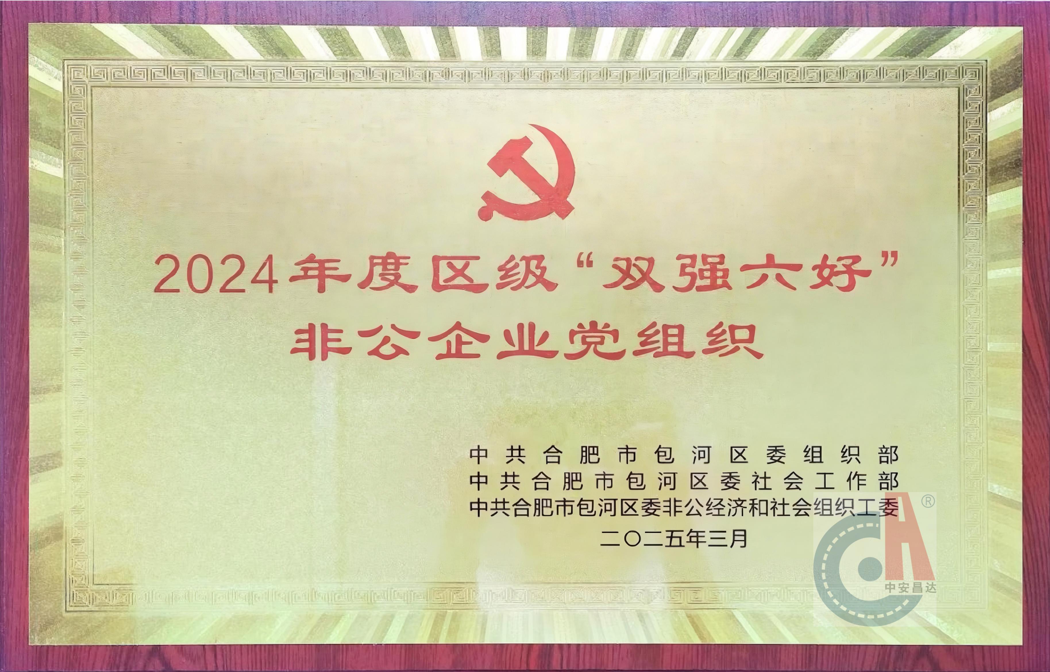 2025年3月,安徽昌达路桥工程集团有限公司党支部荣获2024年度包河区“双强六好”非公企业党组织